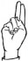 На ћирилици написано ВИОЛЕТА ГОДОЧЕВИЋ састоји се из 16 слова [?]. Исписано ћириличном једноручном азбуком за глувонеме: